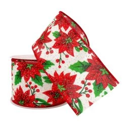 Top 10 😍 2.5″ x 20ft. Wired Faux Linen Poinsettia Ribbon by Celebrate It® ❄ Christmas 👏