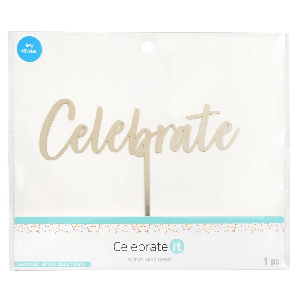 Add style to your celebration with this festive cake topper featuring the word “Celebrate” in gold letters. This topper will add an extra splash of fun to your baked goods.