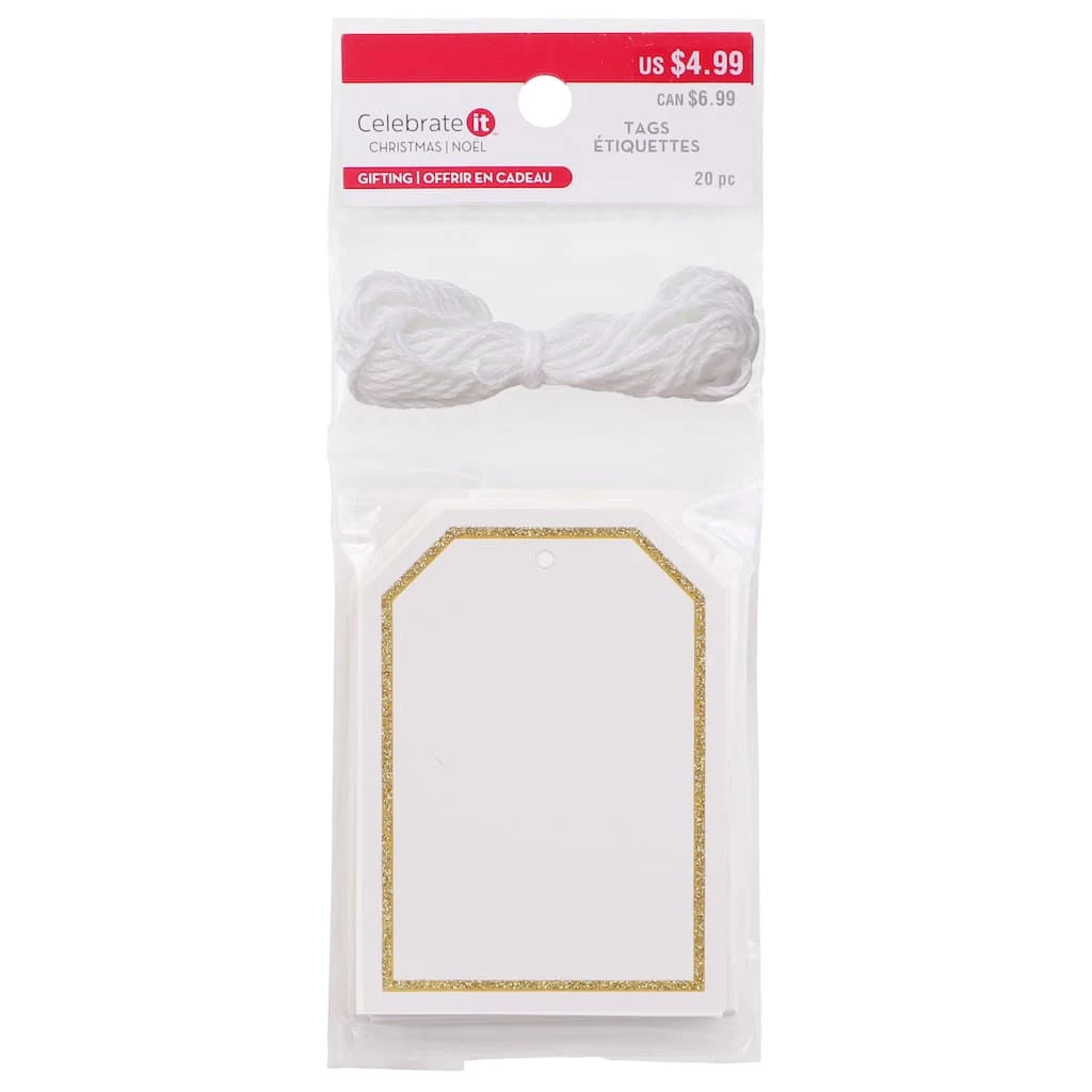 Personalize gifts with these lovely holiday tags. Complete with strings, this set includes 20 tags framed in gold and is perfect for expressing your sentiments this Christmas season.