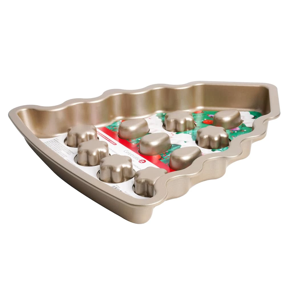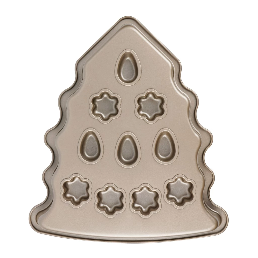 Create a fun and tasty treat with this baking pan. It features a Christmas tree design in gold carbon steel material. Durable, yet, lightweight, this pan will be a great addition to you holiday baking tools.