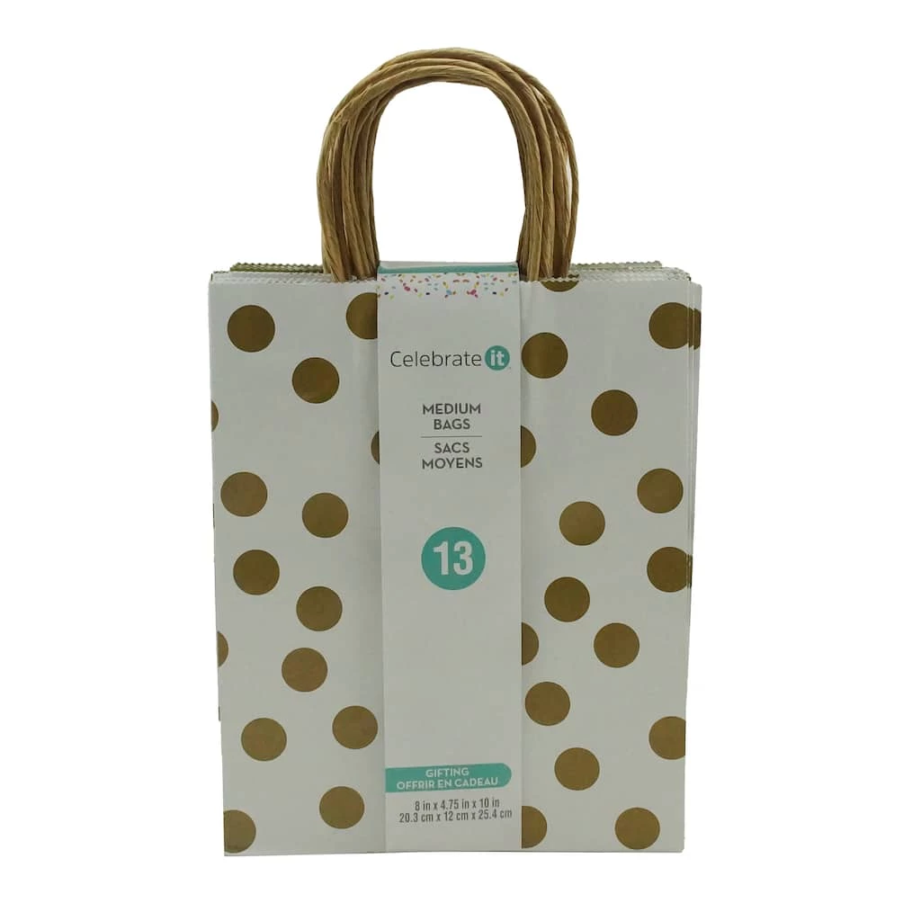 Pack cupcakes, collectibles and other items in this set of medium bags by Celebrate It. These polka dot bags are ideal for packing party favors and gifts during an impromptu celebration. You can also use them to store your belongings for safe-keeping.