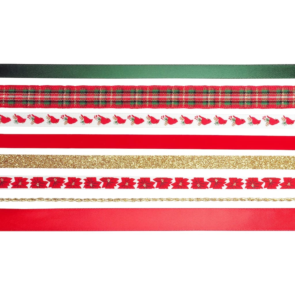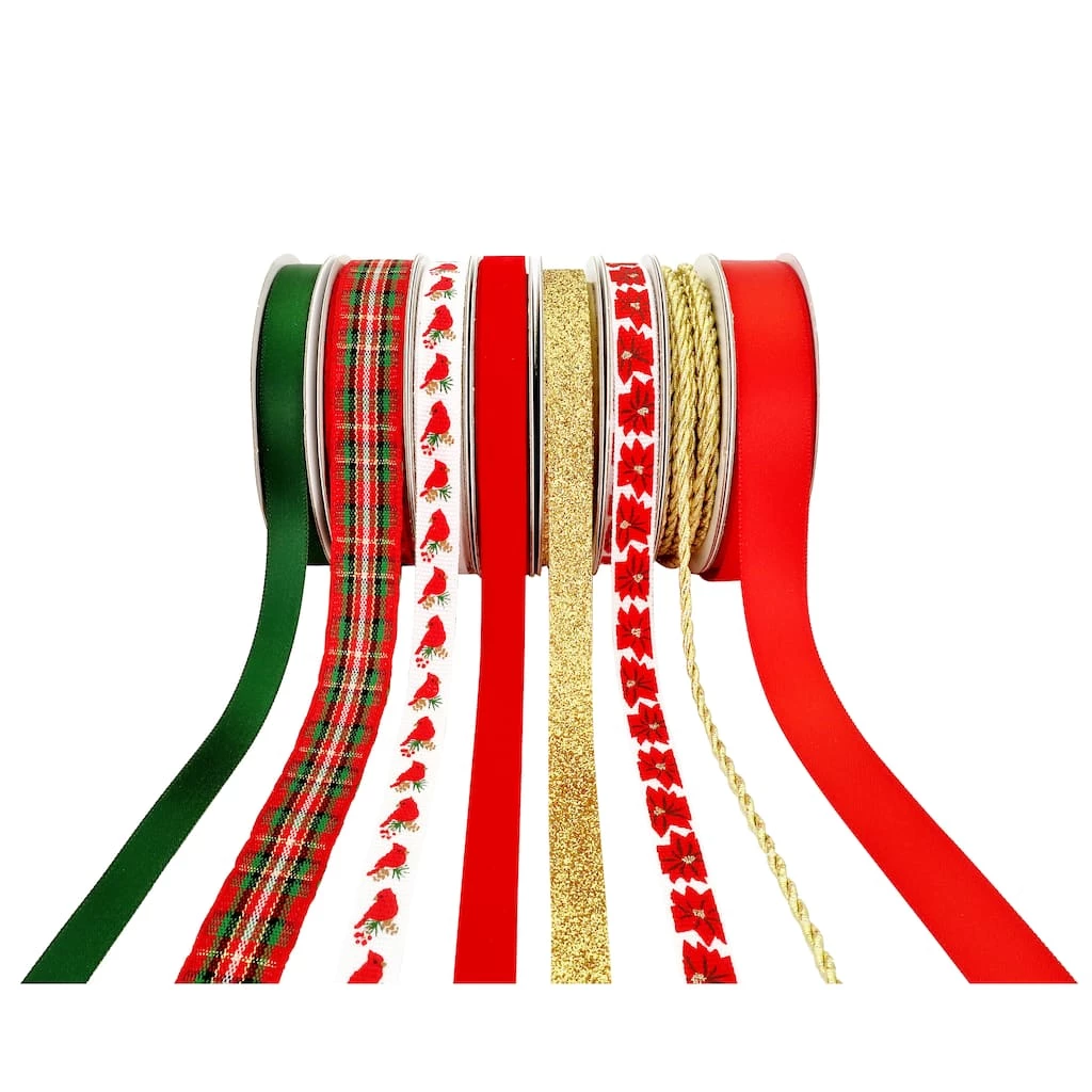 Give your Christmas crafts a lovely bit of sparkle and shine with this ribbon variety pack from Celebrate It. Use to embellish ornaments, pair with lights and greenery to create festive garlands and wreaths, dress up floral arrangements, put the finishing touch on presents and more!