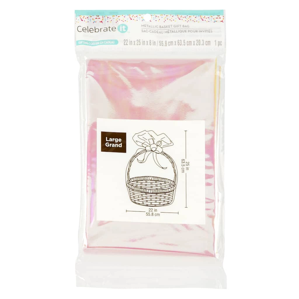 Add a decorative touch to your gift basket with this basket gift bag by Celebrate It. This metallic bag will be great to keep all of your goodies stored in your basket.