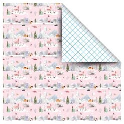 Featuring a lovely winter village scene on pink, this charming wrapping paper is a fantastic way to dress up your holiday presents with flair. Pair it with shimmery ribbons and bows and add complementary tags for gifts sure to stand out as you celebrate this Christmas season with your loved ones.