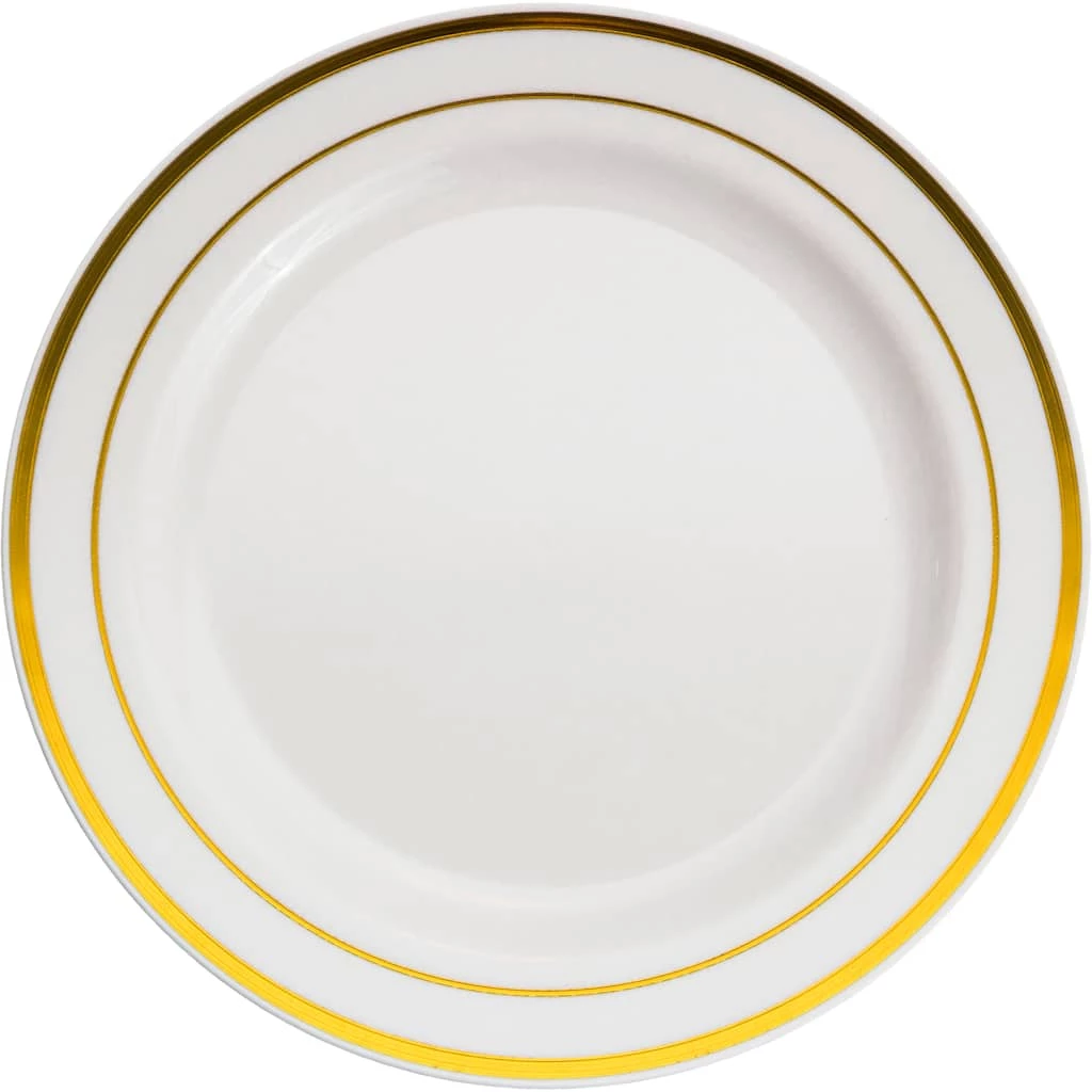Treat your party guests to a scrumptious meal served on these charming plates by Celebrate It. These white plates with a lovely trim are pleasing to the eye and will complement your tasty food.