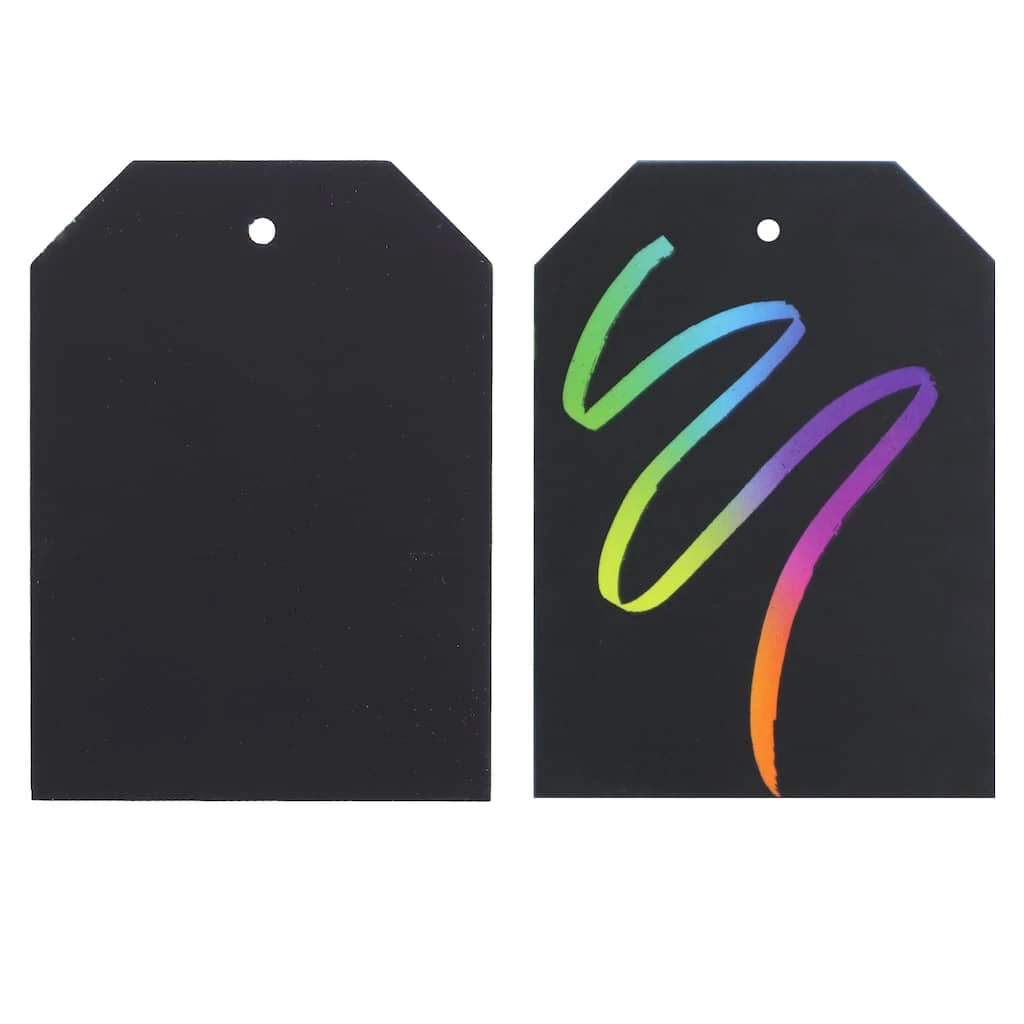 With a classic shape and unique design featuring black scratch paper that reveals a rainbow-hued design of your own creation, this set of gift tags from Celebrate It is a fantastic way to dress up your holiday presents. Pair with whimsical wrapping paper and complementary bows for gifts sure to stand out as you celebrate this Christmas season with your loved ones.