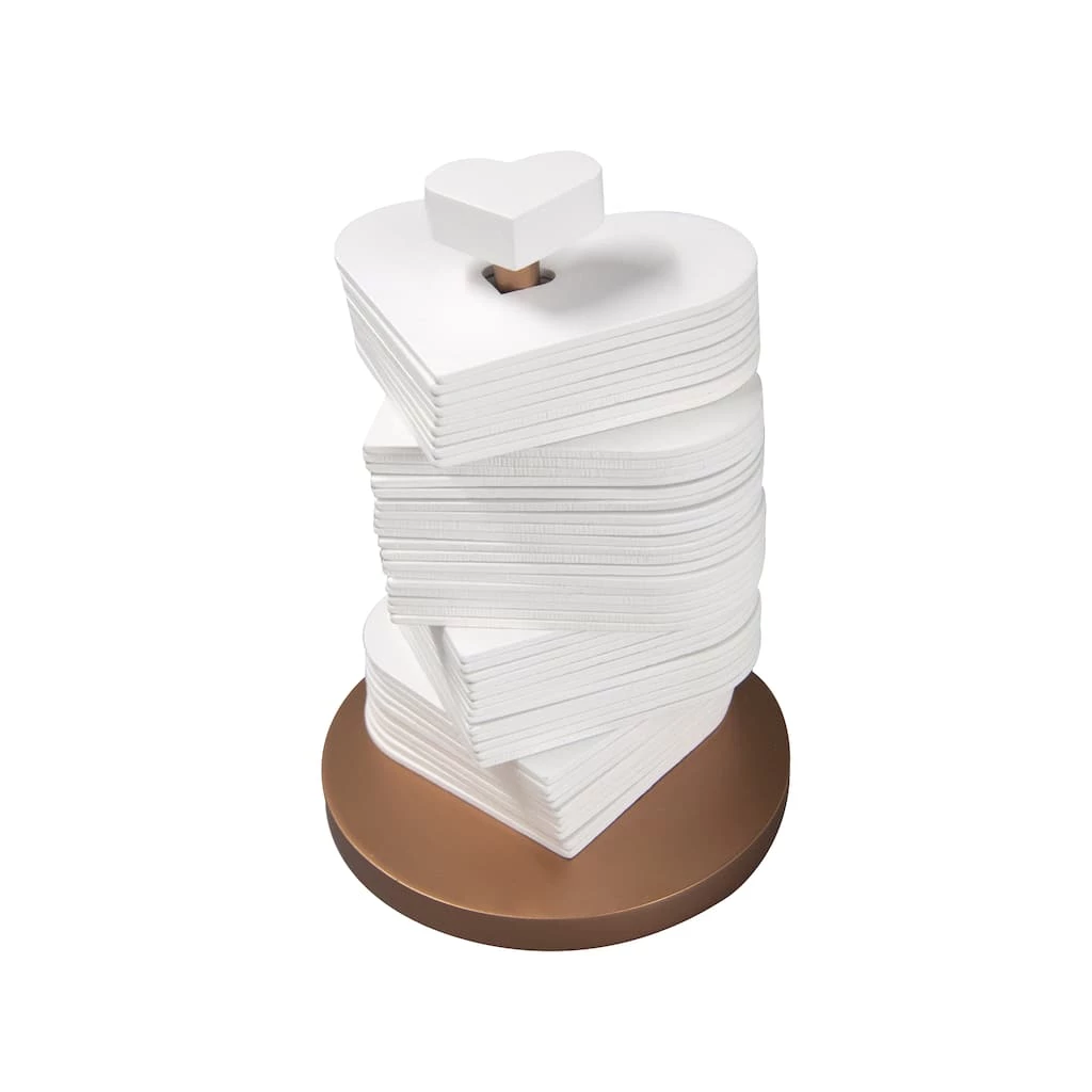 This unique guest book features hearts that guests can sign their name on and stack on the stand. Once completed, this guest book features a heart topper and will make a wonderful display.