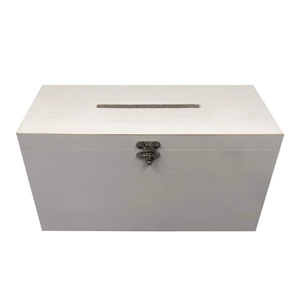 Add this whitewashed card box to your special occasion. Place it on a table so your guests can set their thoughtful cards safely inside.